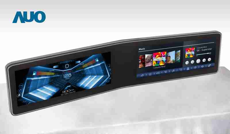 赏金国际 V 型曲面驾驶舱显示器,,,,采全贴合拼接仪表板及中控台显示屏 |