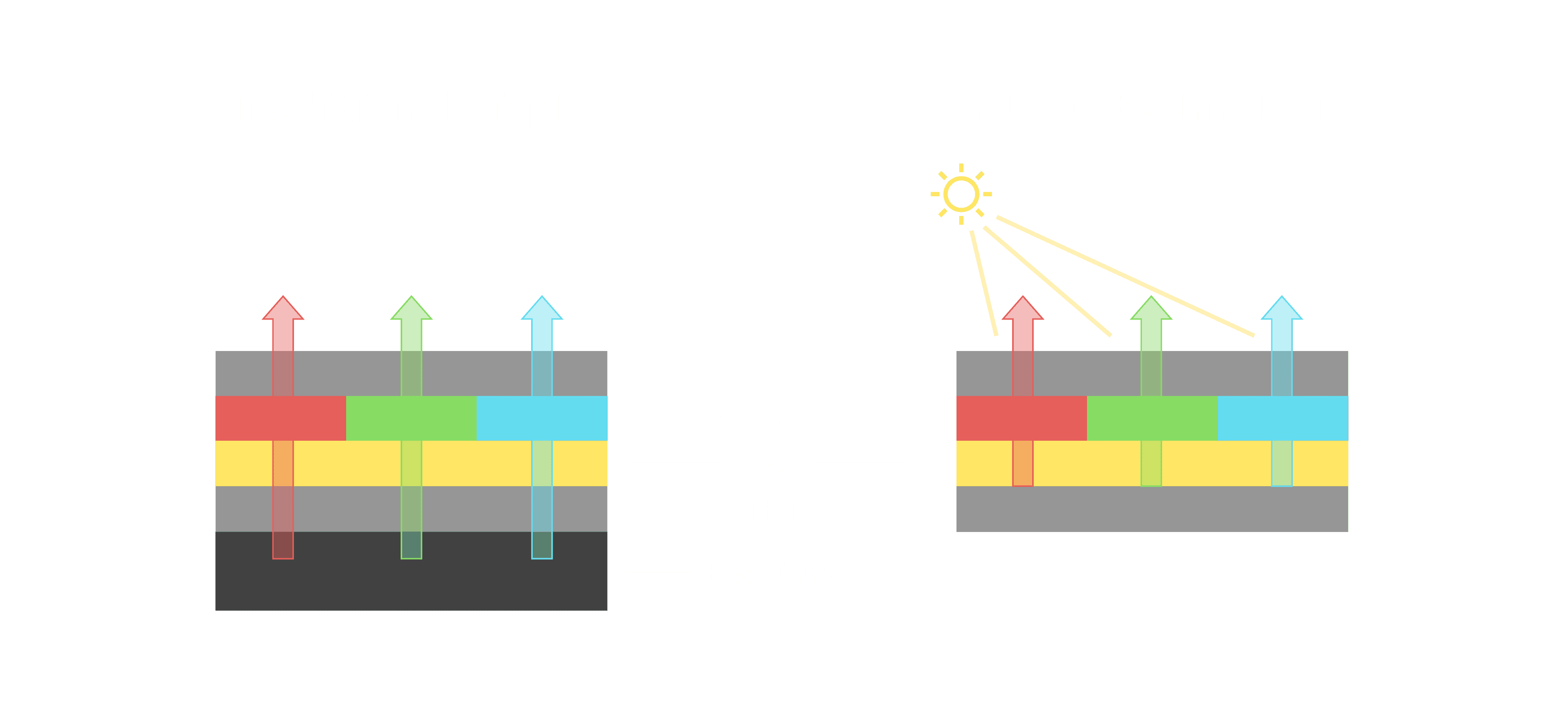 与传统需搭配背光单元的液晶显示相比,,反射式液晶技术不仅更省电、、、、更轻薄,,,且即便在艳阳下仍能清晰显示。。此外,,,,少了背光单元,,,,也大幅降低了 LED 蓝光伤害眼睛的疑虑。。。。